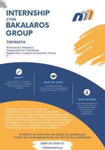 Η εταιρεία BAKALAROS GROUP διαθέτει θέσεις πρακτικής άσκησης για τα παρακάτω Τμήματα του Πανεπιστημίου: